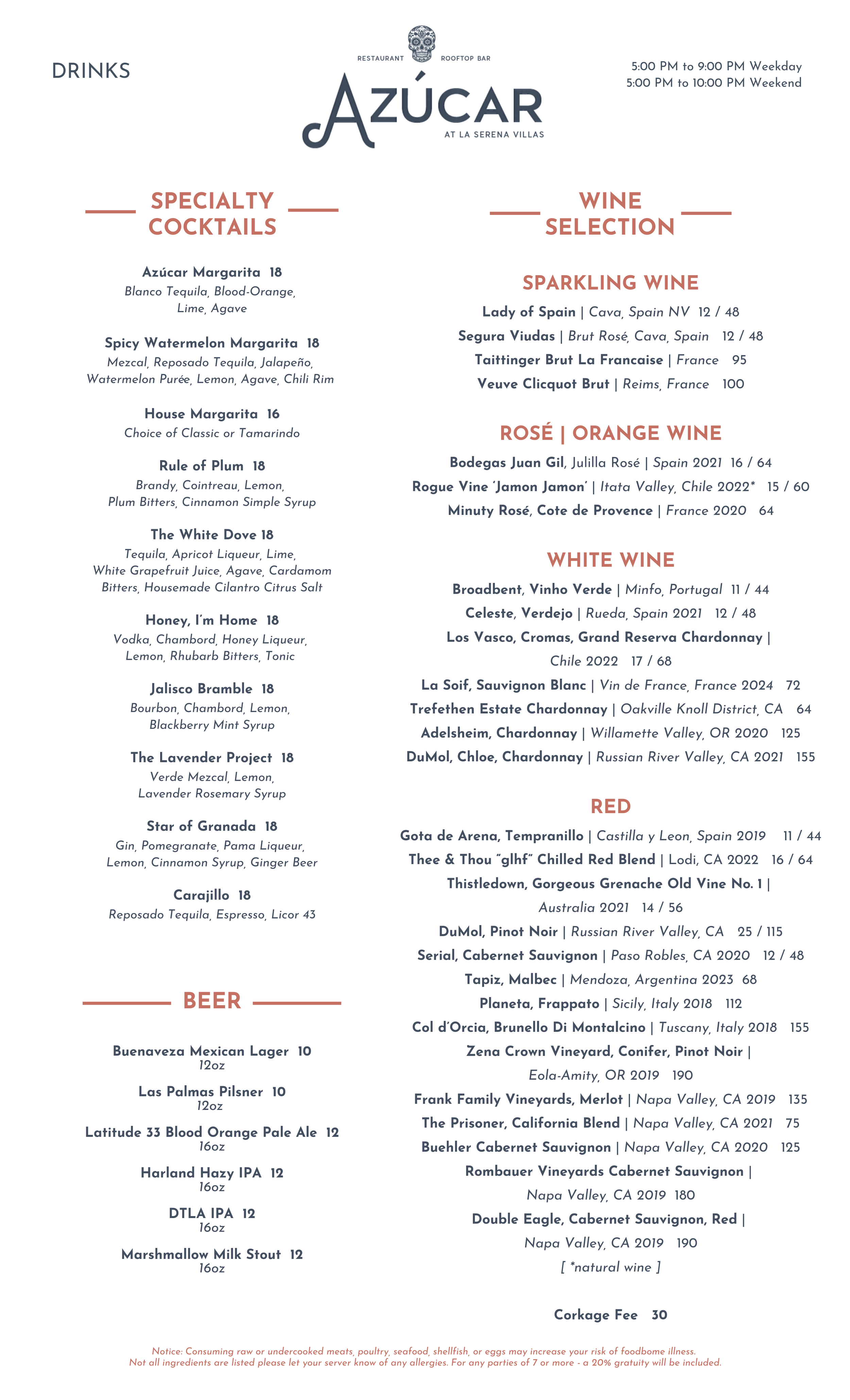 This special rooftop deck is a great mix of Boho meets cool Palm Springs Vibe. Our little gem sits on top of our vibrant and fresh restaurant Azúcar. It is a perfect slice of heaven to enjoy our full menu or have cocktails and apps on our lounge area. You can enjoy the beautiful surrounding views of the San Jacinto Mountains. There’s nothing like it in Palm Springs. Reservations recommended for dinner. Lounge area first come first served. Private parties are available too!